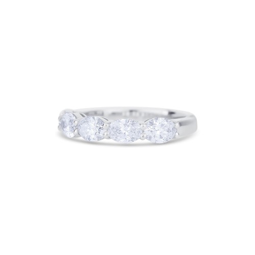 18K White Gold Oval Cut Diamond Halfway Wedding Band