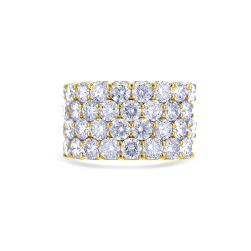 18K Yellow Gold Round Cut 4-Row Diamond Band