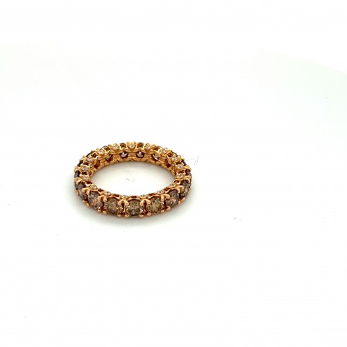 Glenn Bradford’s unique yet functional interpretation of the classic eternity band available in platinum, 18kt green gold or 20kt rose gold. Each gemstone is individually set with 4 prongs that secure each stone individually and securely. The gallery is half round further protecting the top stones and features Glenn’s repeating pierced Butterfly Logo alternating with a burnished diamond brilliant.