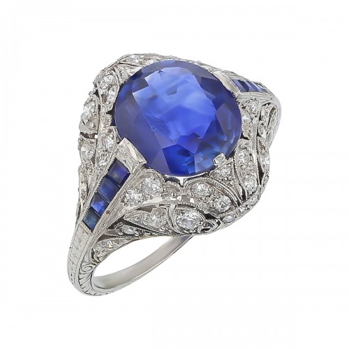 2.59ct Oval Sapphire and 0.26ct Diamond 5 Stone Ring in 18K White Gold, Size 6.25