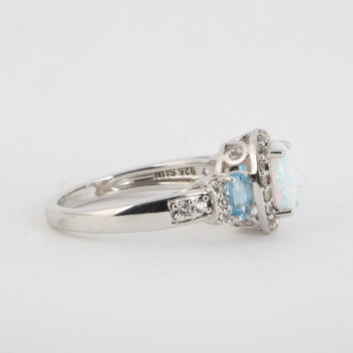 925 Silver 1.07tcw Opal 0.33tcw Blue Topaz 0.28tcw Diamond Ring Size 7 (3.51g.)