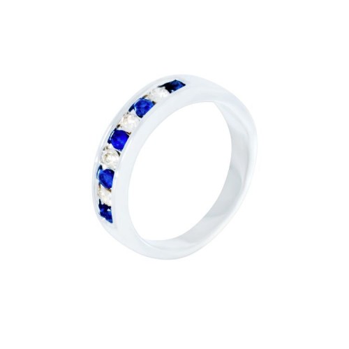 9ct White gold round brilliant cut diamond and sapphire eternity ring. Colour/clarity G-I/SI