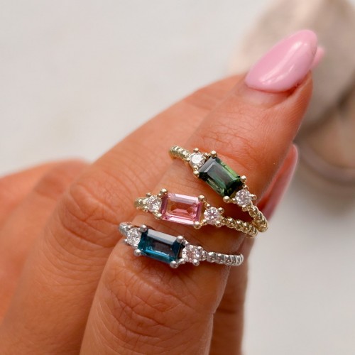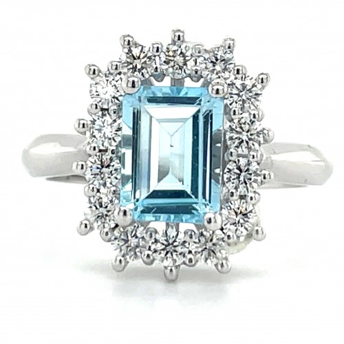 9ct White Gold Earth Grown Horizontal London Blue Topaz & Diamond Ring M 1/2