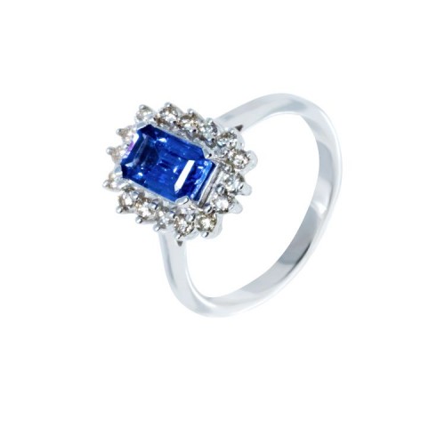 9ct White gold, tanzanite and diamond ring.