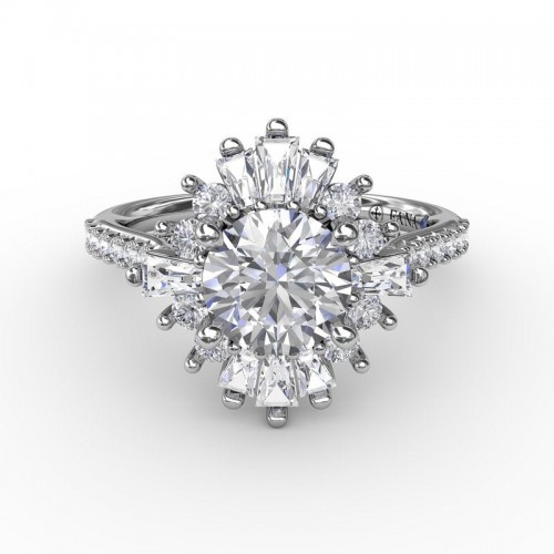 - This engagement ring can accommodate all diamond shapes and sizes, available by special order.
