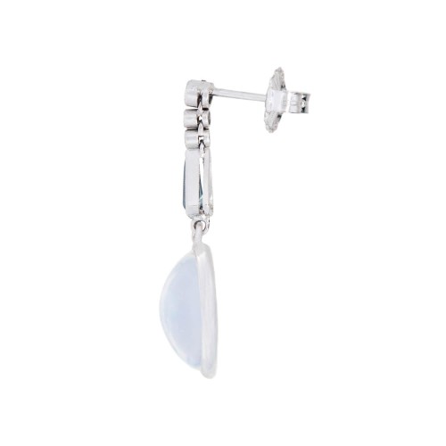 Condition: The overall condition of the earrings is excellent. Besides normal surface wear, there is no apparent damage to the platinum setting or to the moonstones, diamonds, or sapphires, all of which are intact. The earring posts and backs are secure and intact.