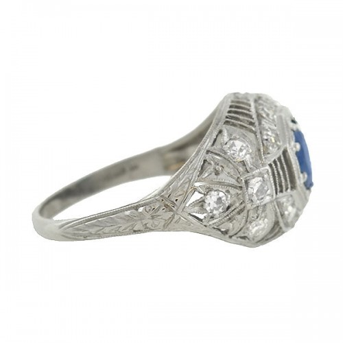 Art Deco Platinum Sapphire & Diamond Filigree Ring .91ct