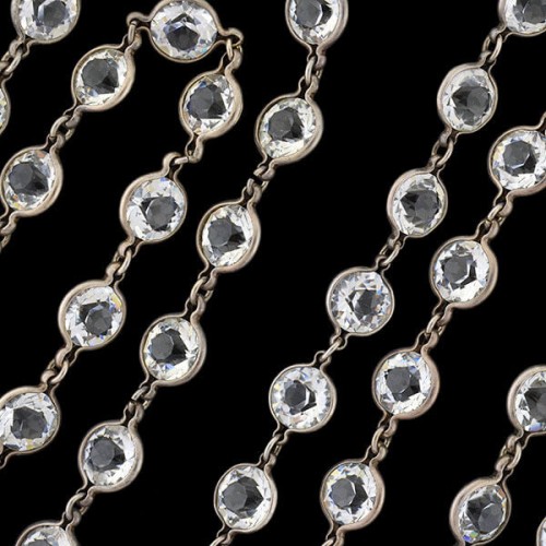 Art Deco Sterling Silver Crystal Necklace 58″