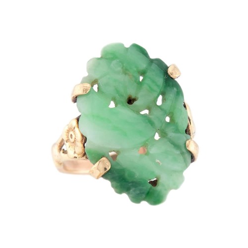 Art Nouveau 14k Carved Jade Ring