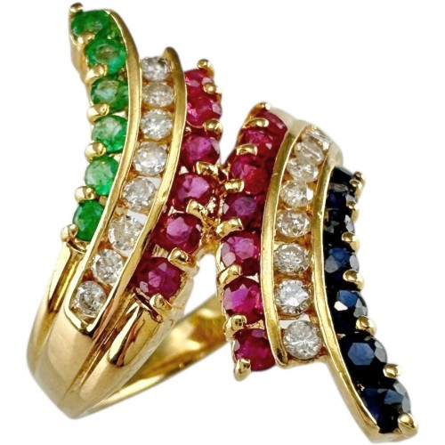 Item name : Au750 Ruby Sapphire Emerald Diamond Ring