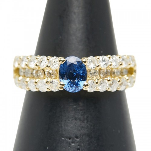 Au750 Sapphire Diamond Ring Gold 18K Yellow Gold (Au750)