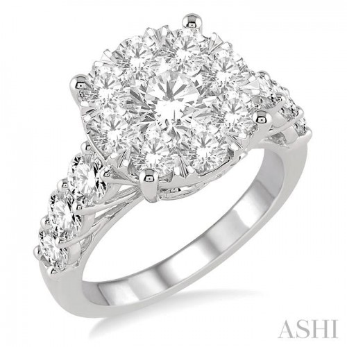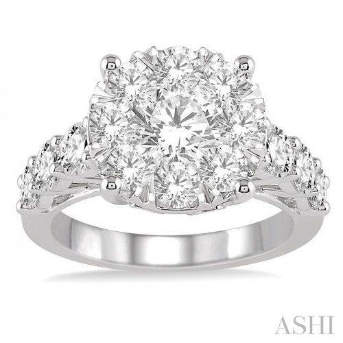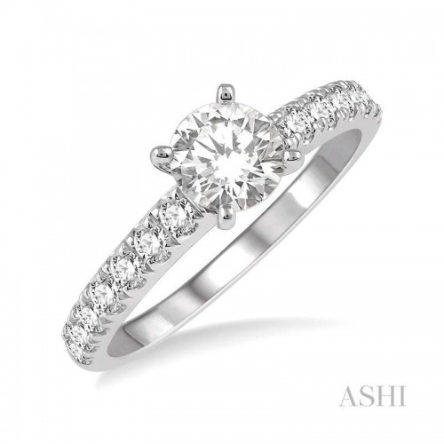 Enhance her feminine grace with this spectacular diamond insert ring. Fashioned in 14 karat white gold, this double ring features two glistening rows of 30 beautiful baguette and round cut diamonds in prong and pave setting. This ring is designed to complement your choice of solitaire ring. Total diamond weight is 1/2 ctw.