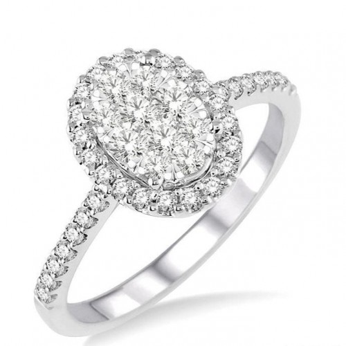 Add more brilliance to your look with this remarkably shiny diamond insert ring. Fashioned in 14 karat white gold, this double ring features two glistening rows of 26 beautiful baguette and round cut diamonds in prong and pave setting. This ring is designed to complement your choice of solitaire ring. Total diamond weight is 1/2 ctw.