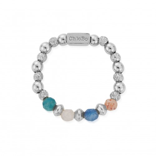 The Island Energy collection from ChloBo is inspired by the mystical and magical island of ‘Es Vedra’, Ibiza. From the Island Energy Collection, this elasticated Beautiful Energy Set of 2 Rings feature gold-plated silver beads and colourful semi-precious stones (Blue Kyanite, Sunstone, Lavender Amethyst and Blue Apatite). Metal: 925 sterling silver with 18ct gold plating. Size: Medium. Each piece of ChloBo Jewellery has been approved by AnchorCert Protect. AnchorCert Protects against all known metal allergens, making it safe for your skin, even if you already have allergies. Presented in official ChloBo packaging.