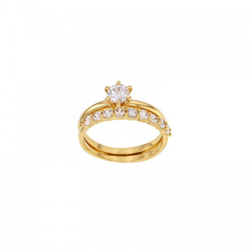 Bijoux D’Or 18ct Gold-Plated CZ Set Ring 321645 58/Q.5