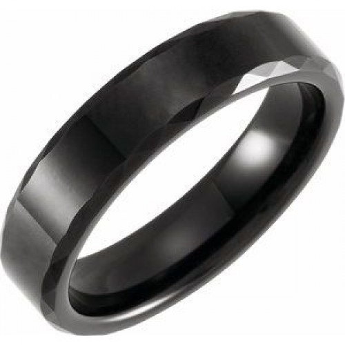 Black PVD Tungsten 6 mm Faceted Beveled-Edge Size 13.5 Band First