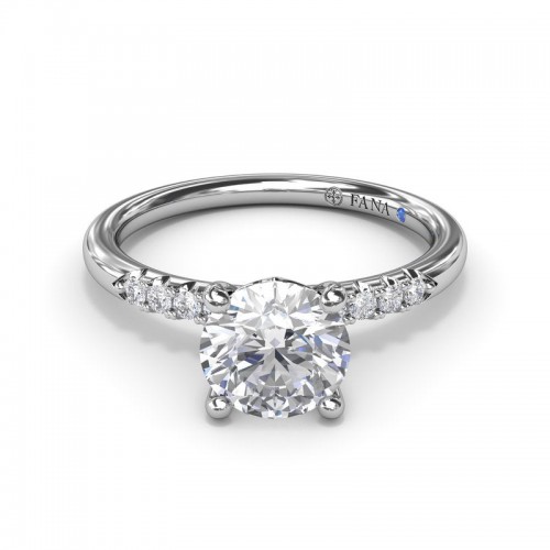 This bold and beautiful diamond engagement ring features four emerald cut diamonds encrusting your center stone. A smooth finished polish for extra comfort. This design can be customized based on stone shape and metal preference.