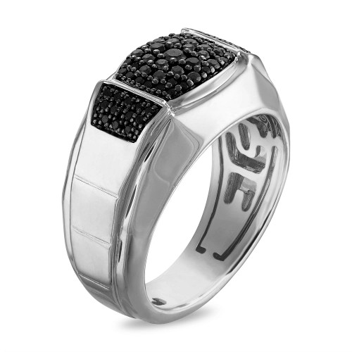 In collaboration with legendary performer Marc Anthony, this piece combines the boldness of his artistry with Bulova’s classically sophisticated design. This pave barrel ring is made of rhodium-plated sterling silver and inlaid with black diamonds totaling 0.50 CTTW, and is stamped with Marc Anthony’s signature logo.