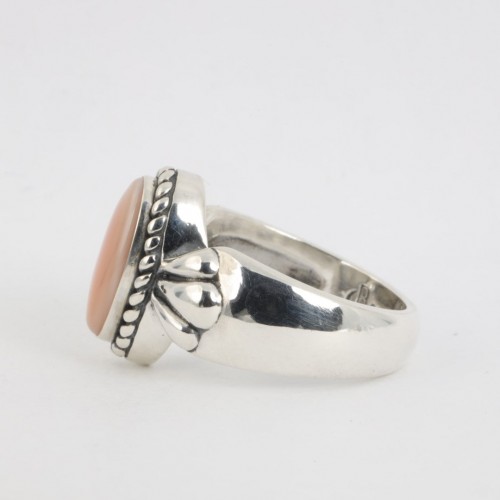 Bold and artisan-crafted, this Carolyn Pollack ring is made from solid 925 sterling silver and reflects the designer’s signature Southwestern-inspired aesthetic. The wide, sculptural profile creates a strong visual presence while remaining comfortable for everyday wear. Crafted in size 6 and weighing 8.24 grams, this piece offers substantial silver weight with refined simplicity.