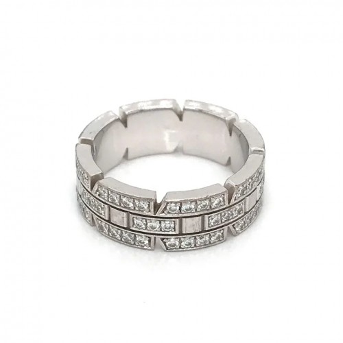 A stunning 18k white gold Cartier “Tank Francaise” diamond ring, adorned with an abundance of the finest quality Cartier Vs quality round brilliant cut diamonds.