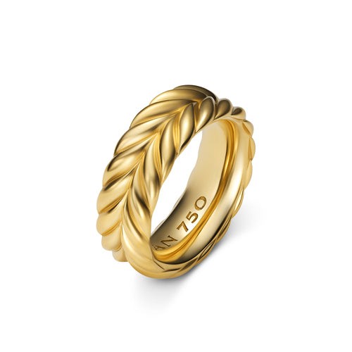 Chevron Band Ring in 18K Yellow Gold, 9mm, Size 10