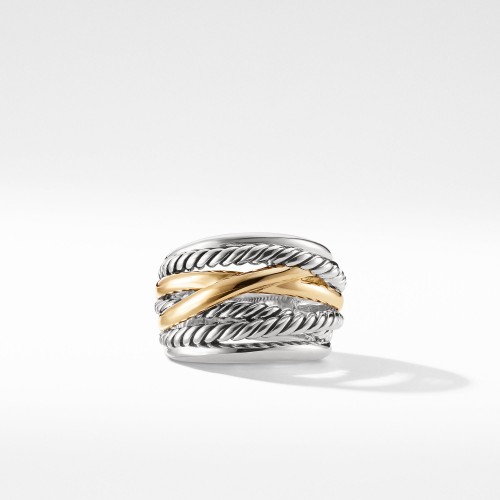 Crossover Narrow Ring with Gold, Size 6