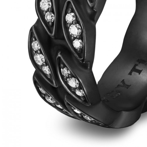Black titanium • Pavé-set diamonds, total carat weight ranges from 0.53 to 0.74 (dependent on size) • Ring, 8mm • Size 8