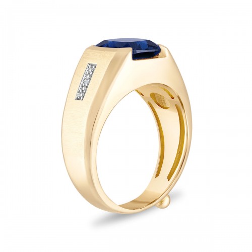 10MM Cushion Blue Sapphire and Diamond Fashion Ring in 10KT Yellow Gold