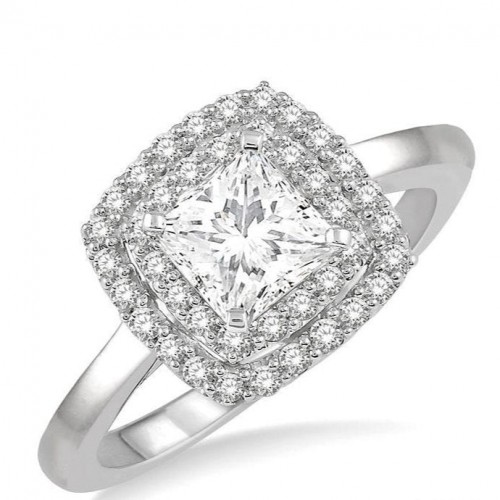 Present this opulent diamond lovebright ring to the one you love the most in your life. Styled in lustrous 14 karat white gold this square shape ring features 3 invisible set arrangements of 27 sparkling round cut diamonds. Brilliant 10 scintillating prong set round cut diamonds embellishes the shank in a brilliant row. Total diamond weight is 1 1/10 ctw.