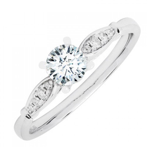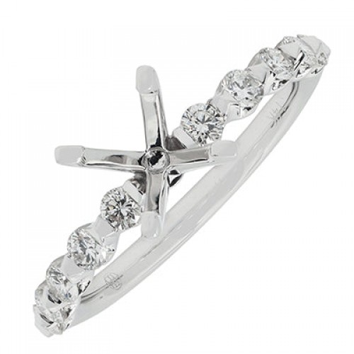 Take your proposal to new heights with this elegant ring setting. White gold captures the details the ring, with a scattering of accent stones within the band, waiting for the perfect diamond.