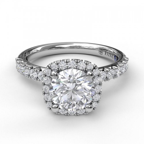 Delicate Cushion Halo Engagement Ring With Pave Shank S3790