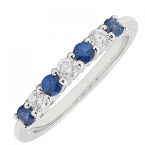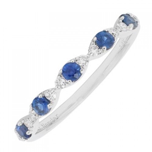 Diamond and Sapphire Band in 14kt White Gold (1/10ct tw) RWBSH0587