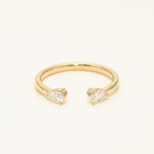 A deliberate break in the band creates a contemporary silhouette defined by negative space. Set in warm 14kt yellow gold, the diamonds provide a sparkling accent to this modern, open design.