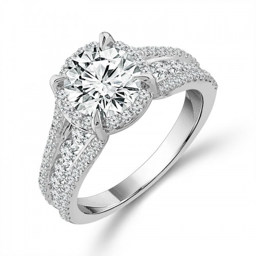 Diamond Bridal Ring 3/4 ct tw Center RD 14k White Gold