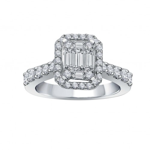 The AVANCE by Little Switzerland Diamond Bridal Set makes an excellent accessory for an engagement, wedding or anniversary. With a sparkling diamond center surrounded by additional round diamonds, this 1.00 ctw, 14K white gold G-H/SI2 bridal set will dazzle friends and family and help you make new memories with your beloved on this special occasion. Our AVANCE jewelry is known for its beauty and quality and pairs nicely with our other diamond options in the collection. This ring is available in size 7.