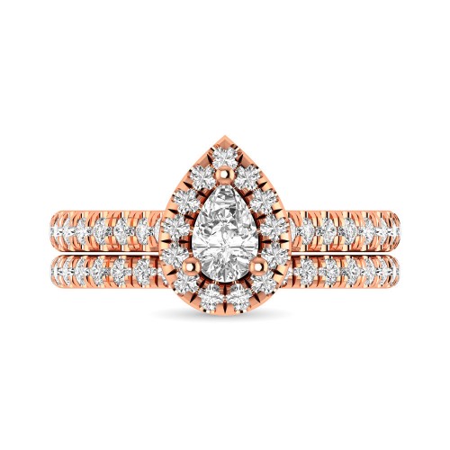 This classic shank single Halo Bridal Ring set with Pear Cut diamond 1/3 ct center. Total diamond weight 1 ct tw.