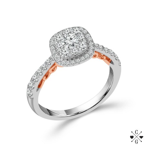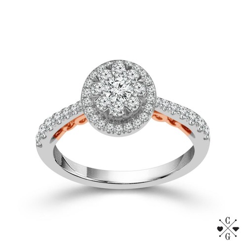 Diamond Engagement Ring 0.75 ct tw 14k White Gold+14k Rose Gold