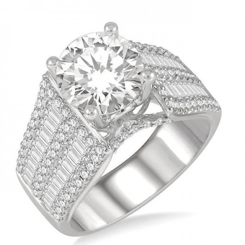 18k white gold melee=0.56ct br diamond halo semi mount ring, with 4 prong rd cz center with split shared prong set cushion halo and twist shank, with strip set gallery