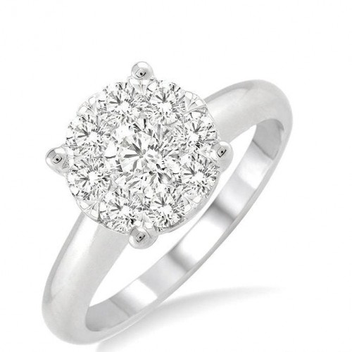 This brilliant diamond insert ring makes a prominent impression on the onlookers. Fashioned in luminous 14 karat white gold, this ring features double rows of dazzling 92 round cut diamonds, elegantly set in prong and pave settings. A bold and brilliant design that incorporates your choice of solitaire ring in a sparkling embrace. Total diamond weight is 3/4 ctw.