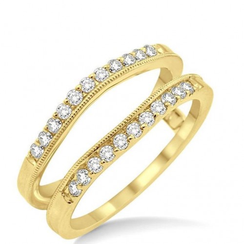Envelop her solitaire ring and wrap her finger with the sparkling fascination of this gorgeous diamond insert ring. Styled in gleaming 14 karat white gold this ravishing ring features sparkling rows of 22 beautiful round cut diamonds that flow down the ring in half channel prong setting. Total diamond weight is 1/3 ctw.