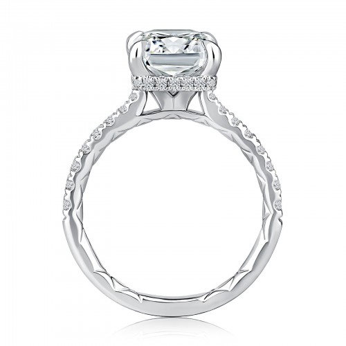 Indulge in the timeless beauty of A. Jaffe’s Diamond Semi Mount Ring. Expertly crafted from 14k white gold, this ring is designed to showcase a square center stone. Glittering diamonds elegantly flow down the shank while a sparkling collar encircles the basket setting. The quilted interior adds a touch of graceful refinement for style and comfort.