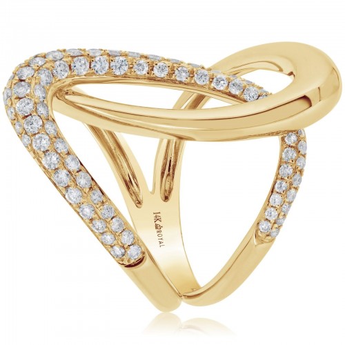 14K Yellow Gold 0.28cttw. Diamond Multi Row Crossover Fashion Ring