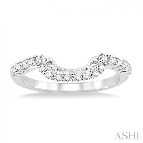 Let this diamond wedding band be a delightful symbol of your love for her. Resplendent 20 round cut diamonds radiates shivers of brilliance on gleaming 14 karat white gold, beautifully prong set. Total diamond weight is 1/3 Ctw.