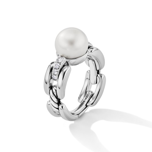 • Cultured freshwater pearls, 10.4mm, Pavé diamonds, 0.20 total carat weight