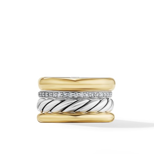 Sterling silver with 18-karat yellow gold • Pavé diamonds, 0.30 total carat weight • Ring, 14mm