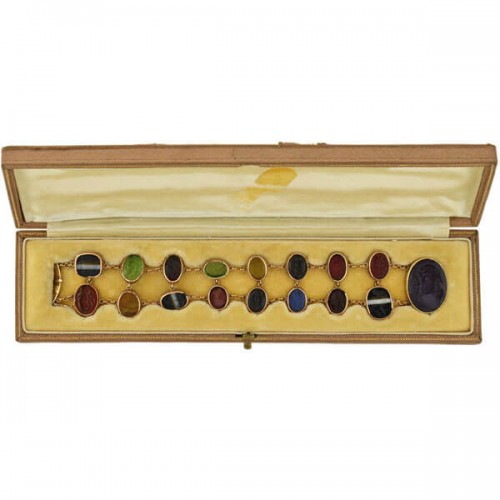 Early Victorian 14kt Glass Tassie & Agate Intaglio Link Bracelet