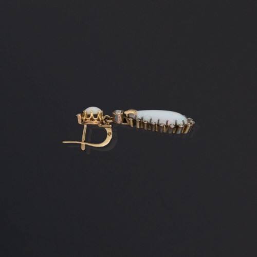 Early Victorian 18k Opal and Diamond Dangle Earrings