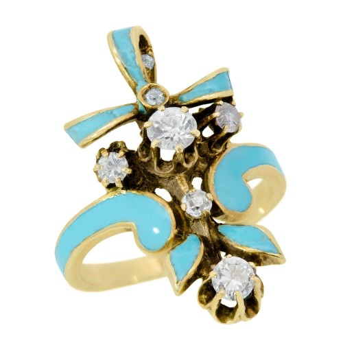 Early Victorian 18k Turquoise and Diamond Cluster Ring