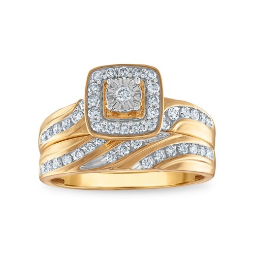 EcoLove 5/8 CTW Lab Grown Diamond Halo Cluster Wedding Trio Set in 10KT Yellow Gold