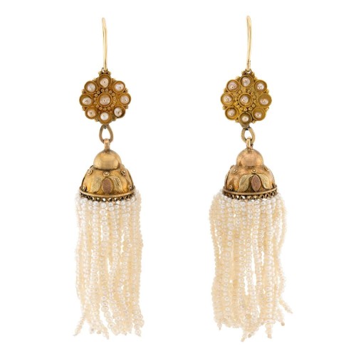 A gorgeous diamond bracelet from the Edwardian (ca1910s) era! Crafted in 14k yellow gold and platinum, the front half of this bangle is encrusted with bead-set diamonds. The diamonds vary in cut, alternating between old mine and Peruzzi cut diamonds. The diamonds display H/I color and VS1-SI1 clarity, and have an approximate total carat weight of 3.25ctw. The back half of the bangle features a simple cutout design. The bracelet secures with a push clasp, and the piece also features two figure eight safety mechanisms. The tongue of the push clasp is marked “14K”. An eye-catching piece, this bracelet would look lovely worn alone or paired with other gold bracelets!